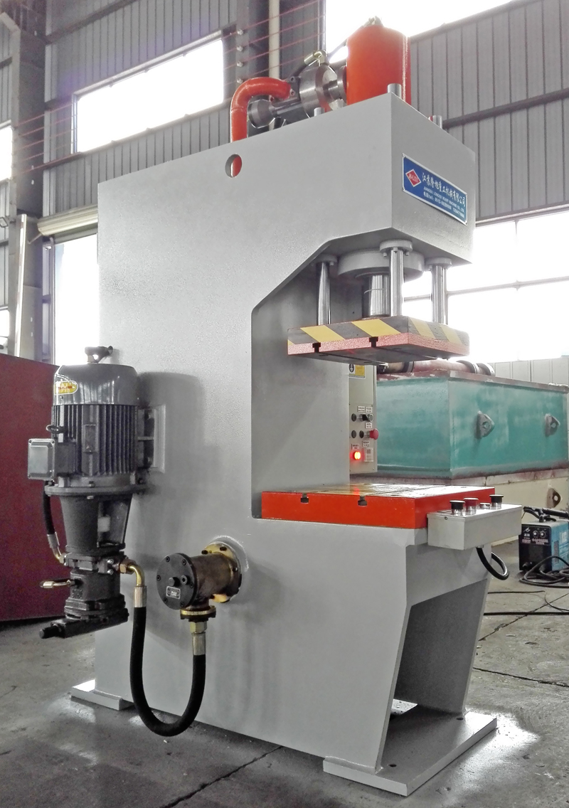 性能特點:本系列單柱式液壓機通過計算機優化直立式C型結構設計,剛性好,采用鋼板焊接,焊接后通過回火時效處理,確保機身永不變形。液壓系統安裝于機身內,外型美觀,結構緊湊,操作方便。本系列液壓機設有獨立的液壓與電器控制系統,采用按鈕集中控制,可實現定程和定壓兩種成型工藝,機器行程、壓力可在規定范圍內調節;本壓機壓頭采用四柱導向,具有抗偏載能力。
