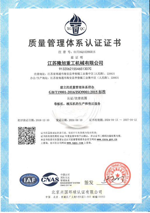 質(zhì)量管理體系認(rèn)證證書(shū)